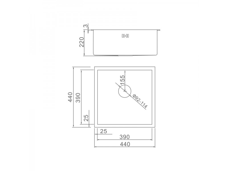 Цвет Графит В комплект входит: мойка сифон размер мойки: 440х440 мм размер чаши: 390х390 мм глубина чаши: 220 мм диаметр слива: 90 мм |