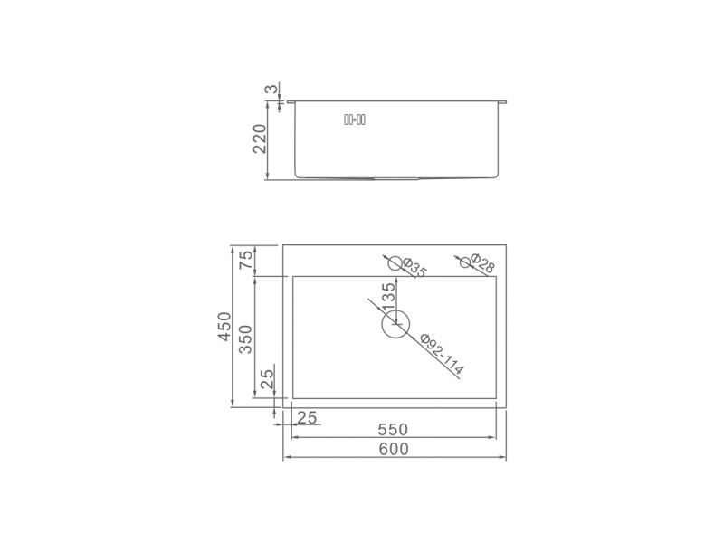 размер мойки: 600х450 мм