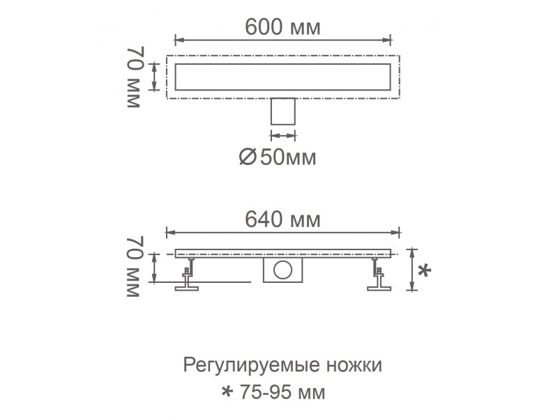 | Производитель: Gerhans C длинной просечкой Артикул : K80207-60 Материал: нержавеющая сталь Гидрозатвор : есть Диаметр сливной трубы Ø: 50 Ширина,мм 70 Длина,мм 600 |