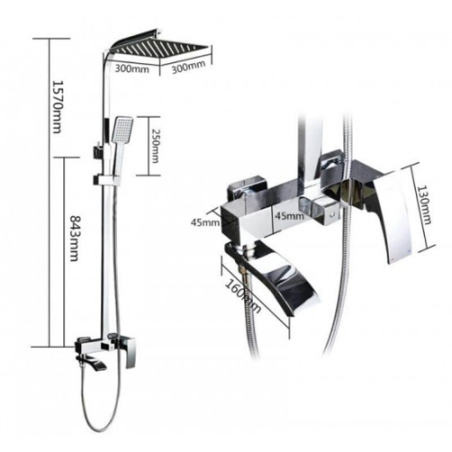 испанский картридж Sedal; тропический душ (300х300 мм); душевой шланг; держатель для лейки. Комплектация: ручной душ (душевая лейка) верхний душ смеситель стойка штанга душевой шланг крепление ручного душа |