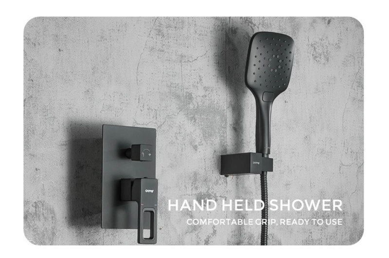 Viber +375293487012 Скидка -10%Встраиваемый смеситель Gappo G7117-6 черного цвета подойдет как для ванной, так и для душа. Трехрежимная душевая система сделана из латуни и окрашена в черный цвет. Полная комплектация это: смеситель, лейка, тропический душ, излив. Лейка работает в 3-х режимах, длина шланга составляет 1.5 метра. Тропический душ с настенным креплением, корпус поворотный. Излив тоже поворотный, он является переключателем на лейку. Переключатель между режимами находится на панели над смесителем. Для настройки температуры и подачи воды используется керамический картридж 35 мм. Его работа без перебоев составляет 150 000 циклов. Все крепления идут в комплекте.Цвет Чёрный Артикул G7117-6 Материал Латунь - Вы можете задать любой интересующий вас вопрос по товару или работе магазина. Наши квалифицированные специалисты обязательно вам помогут.