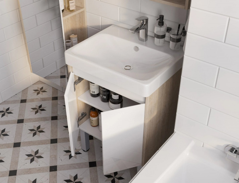 | Закажите товар через Viber или Telegram и Получите скидку 5% +375293487012 Комплектация: Тумба подвесная/напольная Акватон Сканди Doors 55 дуб Верона Умывальник Santek Адриана 55 |