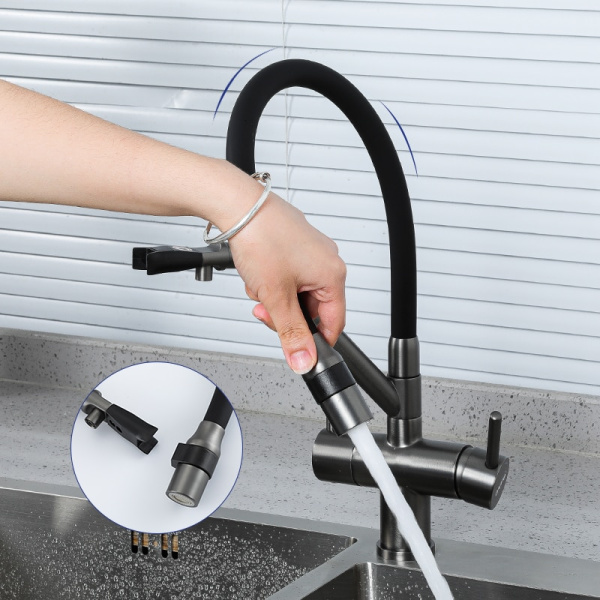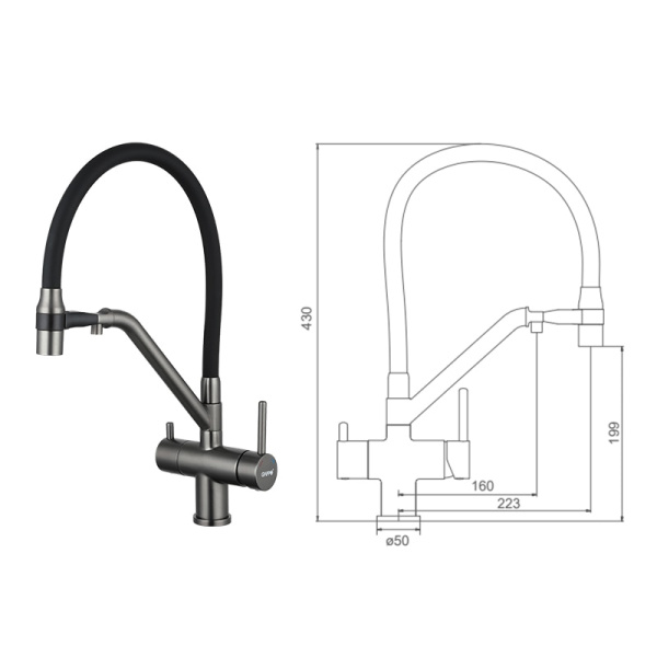 Цвет:корпус смесителя: оружейная сталь силиконовый нос-излив: чёрный |