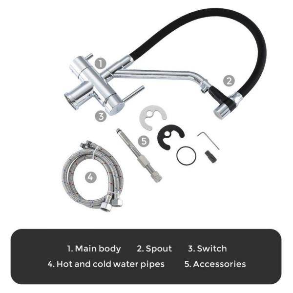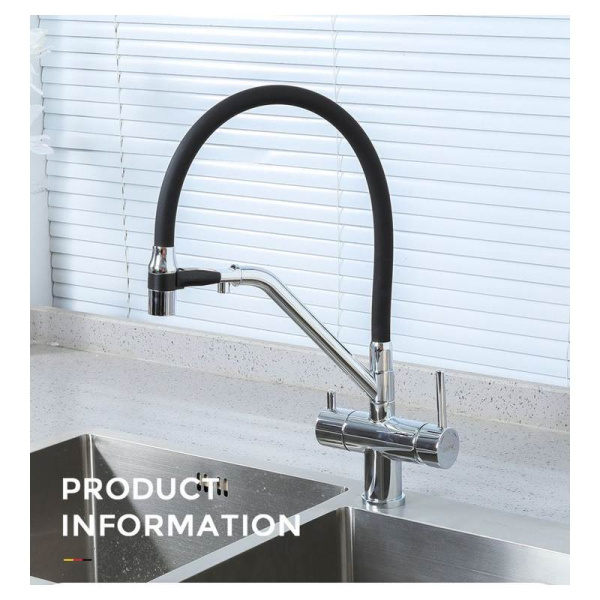 Название:смеситель для кухонной мойки с гибким силиконовым носом-изливом и функцией подключения фильтра воды;