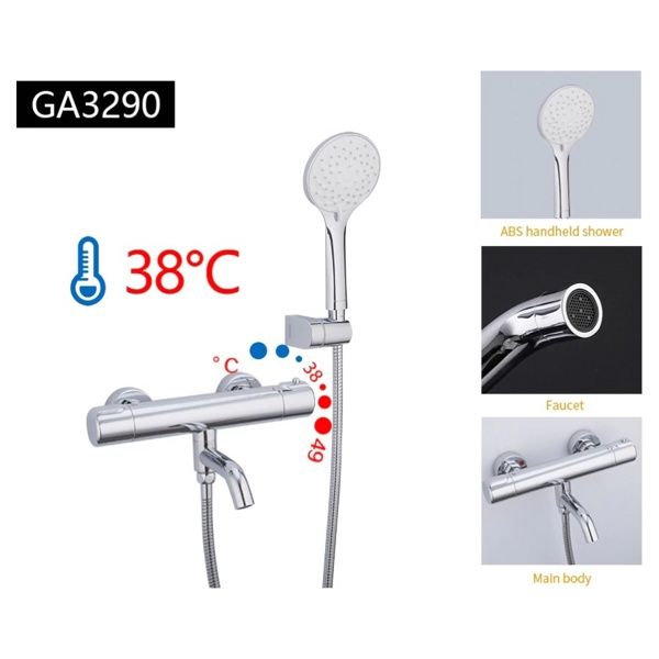 Шланг,лейка (1 режим,пластик),деражатель лейки Название:смеситель для ванны и душа с термостатом и коротким поворотным изливом; Класс сантехники:люкс; Модель: GAPPO G3290; |