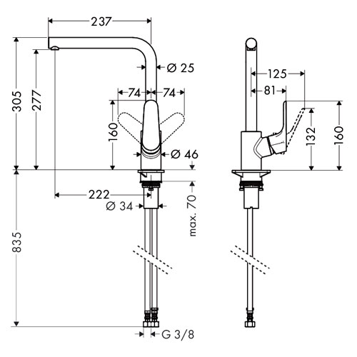 - угол поворота излива регулировка на 3 уровня на 110°, 150° или 360°