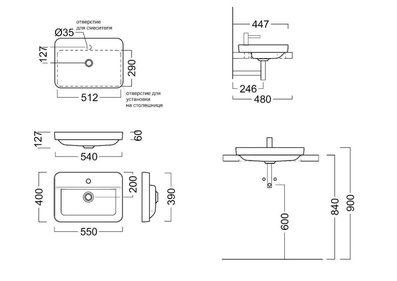 Ширина 55 смГлубина 40 см Высота 12.7 см Вес 12.6 кг Способ установки Встраиваемая сверху Способ монтажа смесителя На раковину |