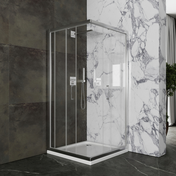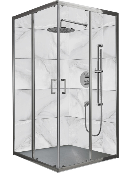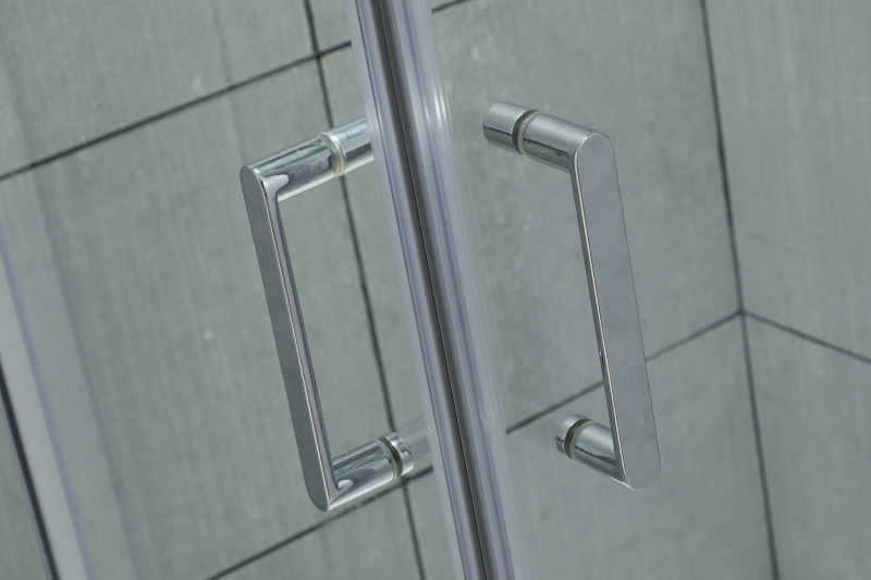 | Заказ можно оформить через viber Telegram +375293487012 Хромированный профиль Стекло прозрачное Easy Clean, 5 мм Раздвижные створки Металлические ручки-скобы Двойные ролики сверху и снизу Ширина входа: 53,5 см Гарантия 10 лет. Гарантия на фурнитуру 2 года |