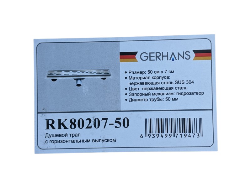 | Производитель: Gerhans C длинной просечкой Артикул : K80207-50 Материал: нержавеющая сталь Гидрозатвор : есть Диаметр сливной трубы Ø: 50 Ширина,мм 70 Длина,мм 500 |