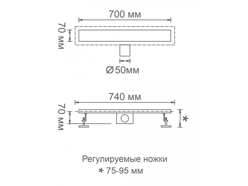 | Производитель: Gerhans C длинной просечкой Артикул : K80207-70 Материал: нержавеющая сталь Гидрозатвор : есть Диаметр сливной трубы Ø: 50 Ширина,мм 70 Длина,мм 700 |