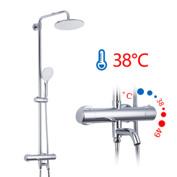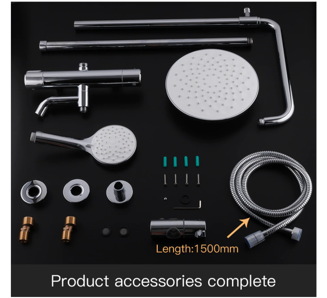термостатический картридж Yizhan; тропический душ (d 225 мм); душевой шланг; держатель для лейки; 3 режима работы лейки. Комплектация: душевая система, ручной душ, инструкция, гарантийный талон |