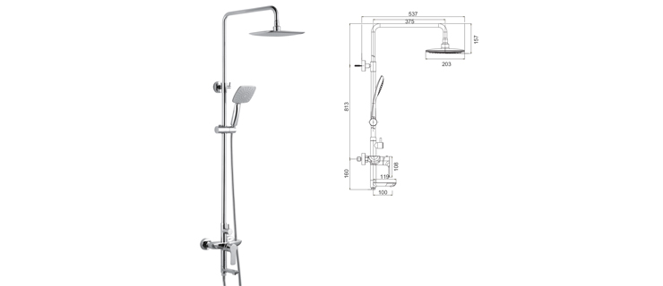 | Особенности Люксовая душевая стойка cо смесителем и изливом Керамический картридж Sedal Ø35 мм (Испания) Аэратор Neoperl (Германия) Поворотный переключатель Поворотный излив В комплекте Тропическая лейка D=20 см Душевой шланг 150 см Ручная лейка 1 режим |