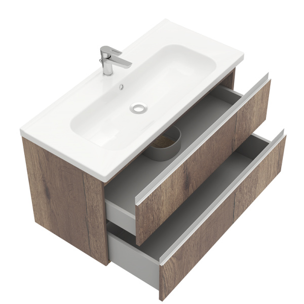| Тумба подвесная Electra 100 см цвет Дуб Рока и Раковина Creavit Ideal 100x45 |