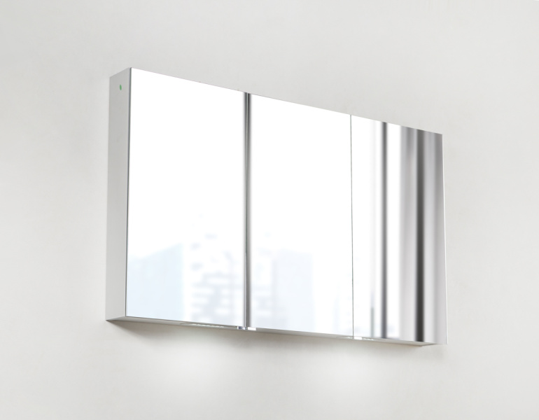 Зеркальный шкаф оснащен нижней и внутренней подсветкой,розеткой,нижним сенсорным выключателем,распашные двери оборудованы двусторонним зеркальным полотном.
