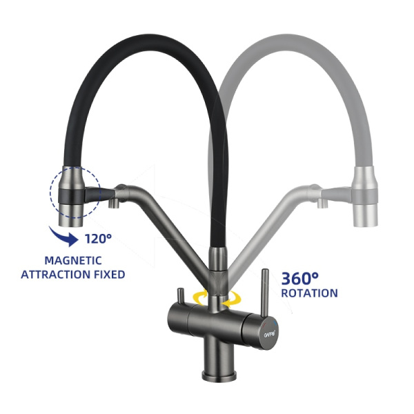 Цвет:корпус смесителя: оружейная сталь силиконовый нос-излив: чёрный |