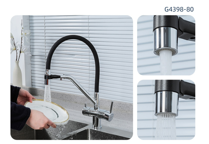 Название:смеситель для кухонной мойки с гибким силиконовым носом-изливом и функцией подключения фильтра воды;