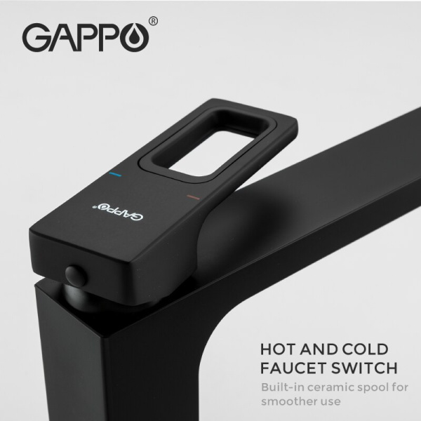 Особенности смесителя для умывальника черного цвета Gappo G1017-6: