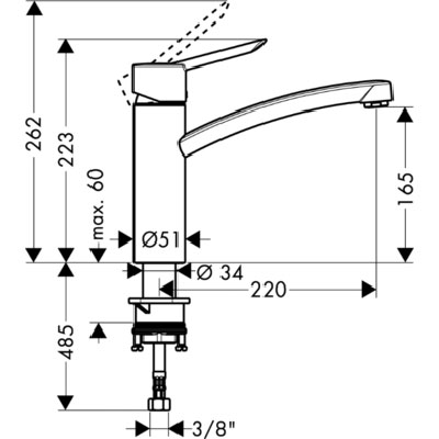 - угол поворота излива 360°