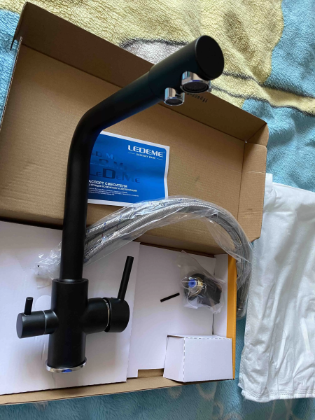 | При заказе через Viber и Telegram +375293487012 Скидка -5% Производитель: Ledeme Смеситель для кухни с подключением фильтра питьевой воды Артикул: L4055B-3 Материал корпуса: латунь Цвет: черный, без точек, | эмаль, поверхность гладкая; |