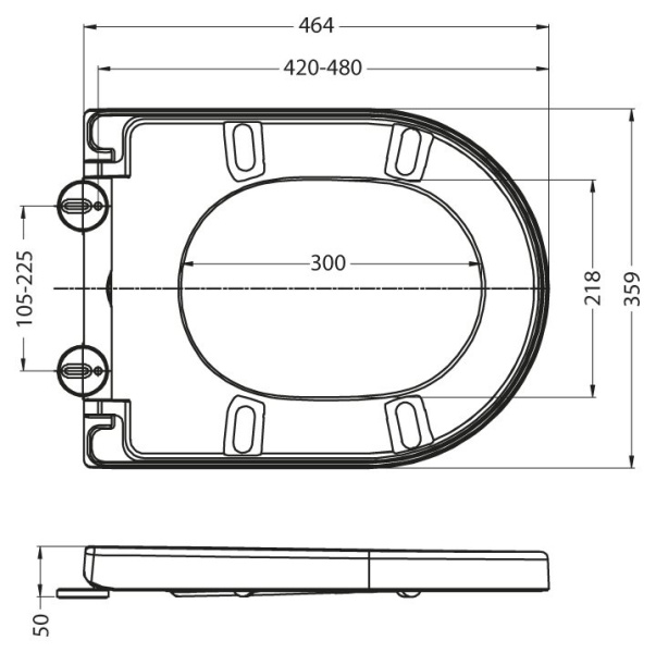 | Жесткая крышка-сиденье из дюропласта, быстросъёмная, с механизмом Soft Close Габаритные размеры:464x359x50 Подходят для унитазов серии Sfera-r |