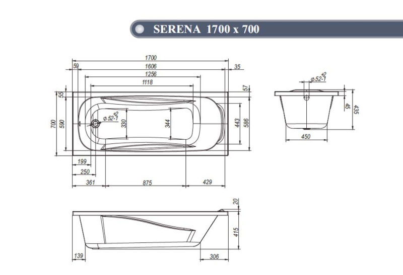 Коллекция: «SERENA»Габариты Длина, мм: 1700 Ширина, мм: 700 Высота, мм: 435 Параметры Цвет: белый Форма: прямоугольная симметричная Объем воды, л: 172 |